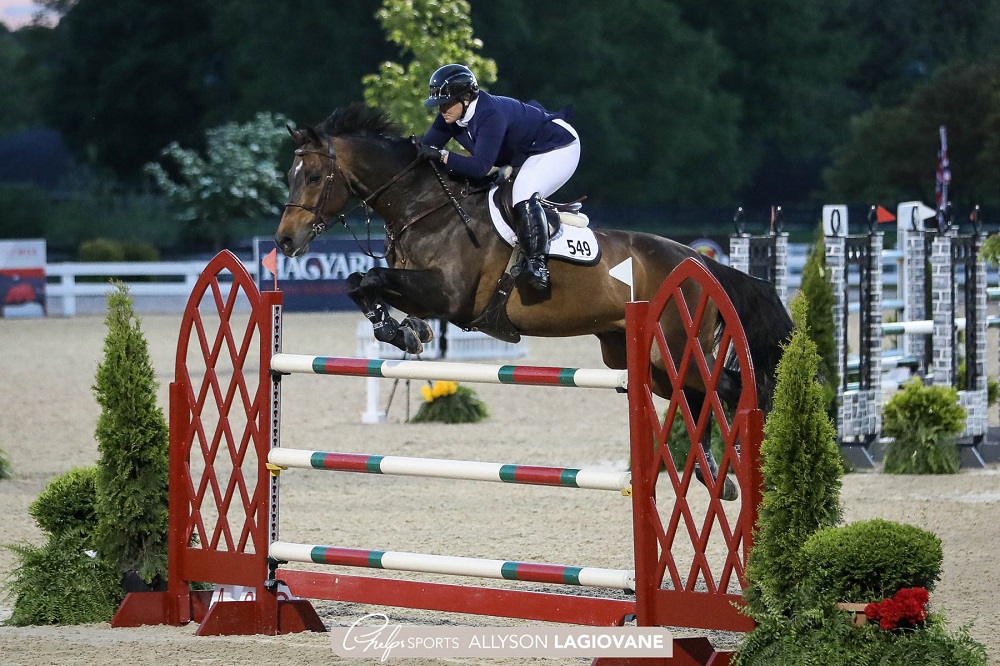 In a race against the clock, the win was anyone’s for the taking. As the third pair to enter the arena and try their hand at the shortened 7-obstacle track, the United States’ Taylor St. Jaques (USA) entered the arena aboard her own Upsilon de La Liniere, determined to post a clear round. She managed to leave all of the rails in the cups, setting the pace for athletes to follow in 39.94 seconds.