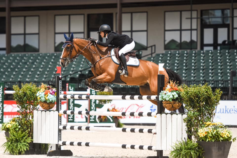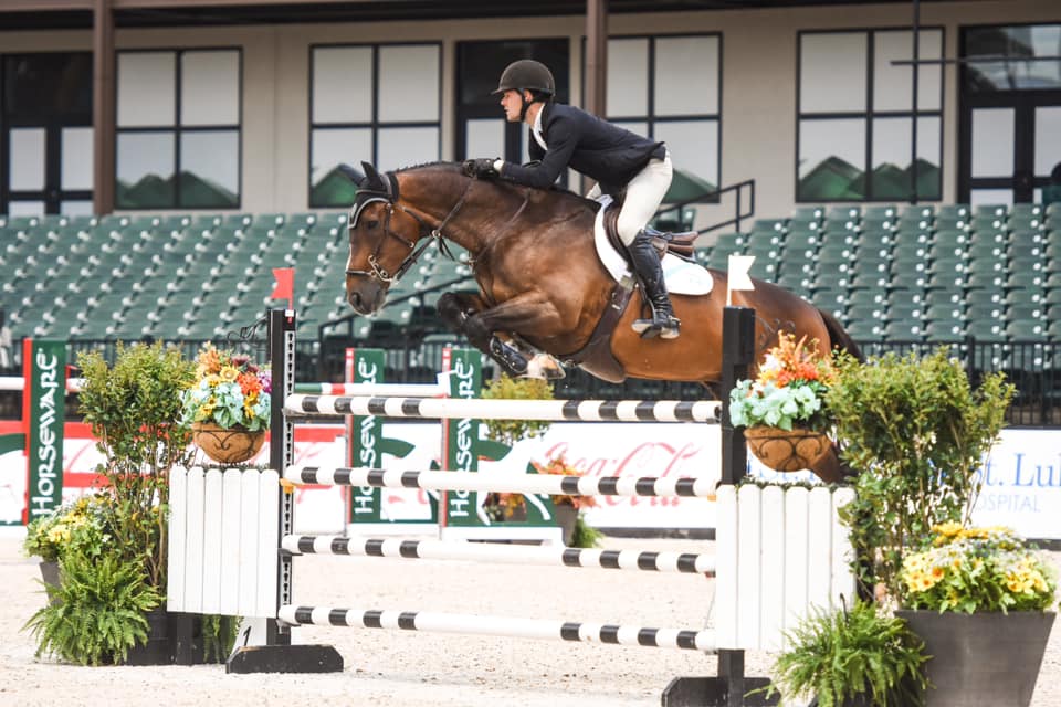 Mill Spring, North Carolina, USA – May 13, 2021 – The youngest in the class navigated a tricky course to beat the adults in Thursday’s $20,000 Horseware Ireland Welcome Stake, resulting in Zayna Rizvi (USA) claiming her biggest win to date aboard Peacock Ridge LLC’s Excellent. The duo was one of four to challenge the jump-off track, but none could best their trailblazing time of 38.759 seconds.