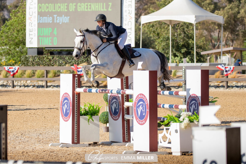Temecula, California, USA – June 03, 2021 – As the end of the Temecula Valley National Series, presented by Interactive Mortgage nears its final days and after nearly five weeks of anticipation, 31 of the fastest horse-and-rider combinations took to the Grand Prix Arena for the $22,500 Spruce Meadows 1.35m NEEd for Speed Final. Only those competitors who qualified during one of the NEEd for Speed classes over the five weeks of competition at Galway Downs were invited back for the nail-biting finale. Riders were encouraged to put the pedal to the metal in hopes of galloping off with a handsome chunk of the prize and a well-deserved blue ribbon. Of the speedy field, it was Jamie Taylor (USA) and Cocoliche Of Greenhill Z who hustled the hardest, capturing the championship title.