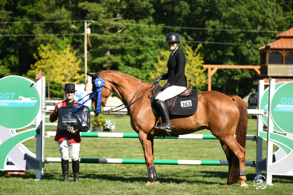 Moving on with the Green Hunter divisions, it was Grafton Street, LLC’s NVF Fort Knoxx with 34 points and the 3’3” Green Hunter Championship with Jennifer-Ritucci-Volandre on board. Jennifer Ritucci-Volandre also rode Jai Smith-Rezac’s Fortuna to a win in the 3’3” Green Hunter Over Fences class today. The 3’3” Green Hunter Reserve Championship went to Caitlin Venezia- White on Jennifer Combs’ Greylock with 32 points. Hayley Anderson rode Gretchen Anderson’s Freya RGS to a Blue in the second over fences class in the 3’3” Green Hunters.