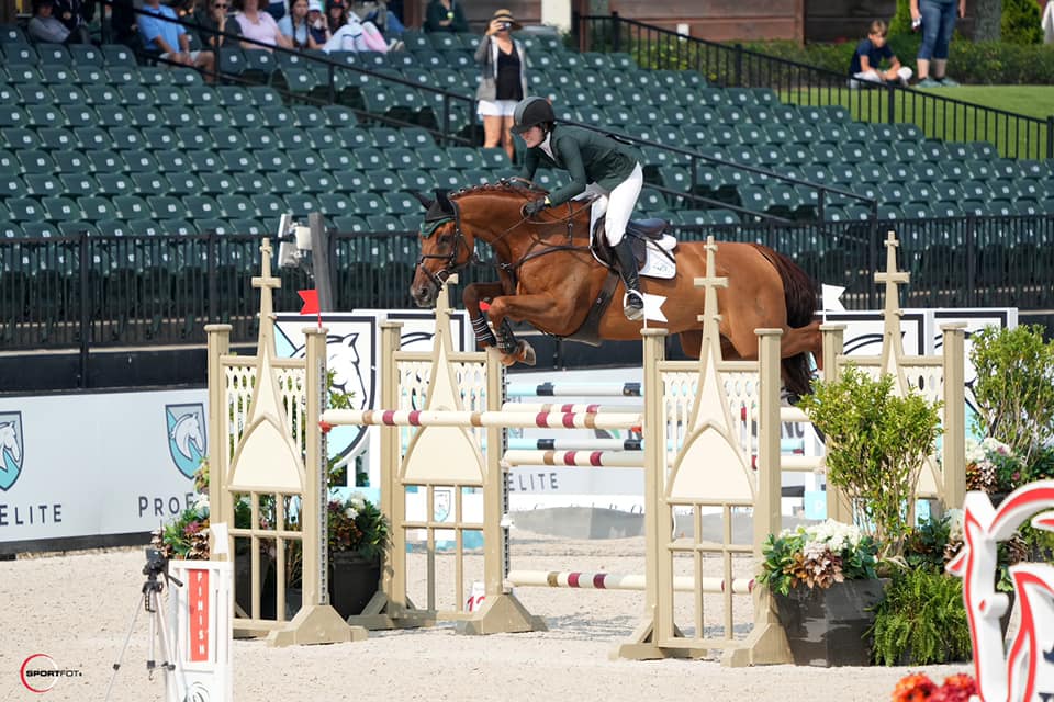 Caelinn Leahy (USA) and Coldplay 31, a 2009 Westphalian gelding (Cassini ll x Phantom) owned by Steve Schaefer, took second place on a clear jump-off performance of 29.585 seconds.