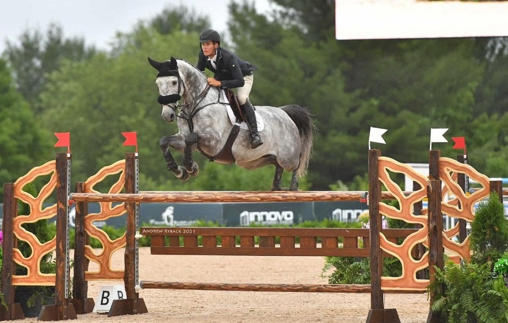 Aboard the 10-year-old Volo’s Diamond, Korotkin, 19, navigated an easy clear in the 1.30m in Traverse City. Korotkin (USA) has officially acquired the ride on the talented grey gelding (Stakkatol x Baloubet du Rouet) for Sandalwood Farms. The duo will make their international debut in CSI2* competition at the Traverse City venue during GLEF II.