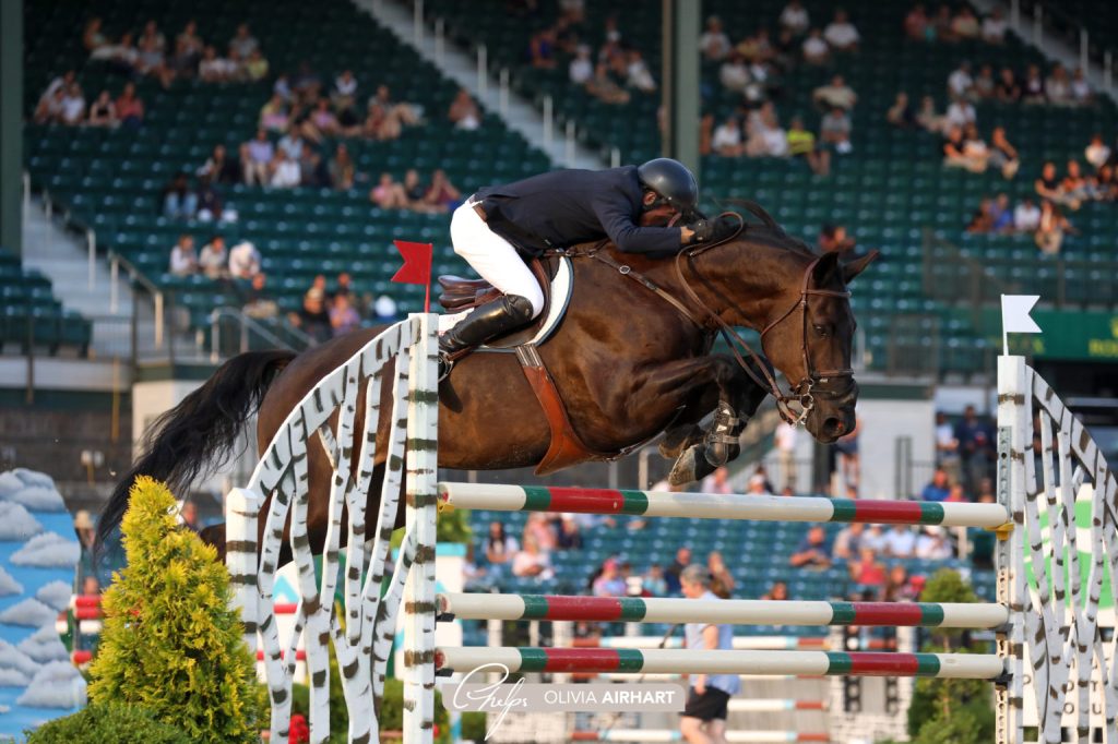 Thirty-three athletes tried to master Bobby Murphy’s (USA) 13-obstacle first-round course, which featured a vertical-oxer-vertical triple combination as the fifth question, an oxer-vertical double combination near the end, and a final delicate vertical towards the gate. Eleven horse and rider combinations advanced to the jump-off with nine fences that included several long gallops where athletes could leave out strides to try and capture the victory.