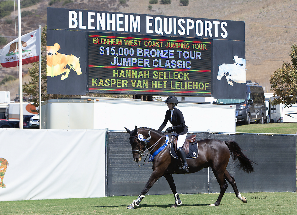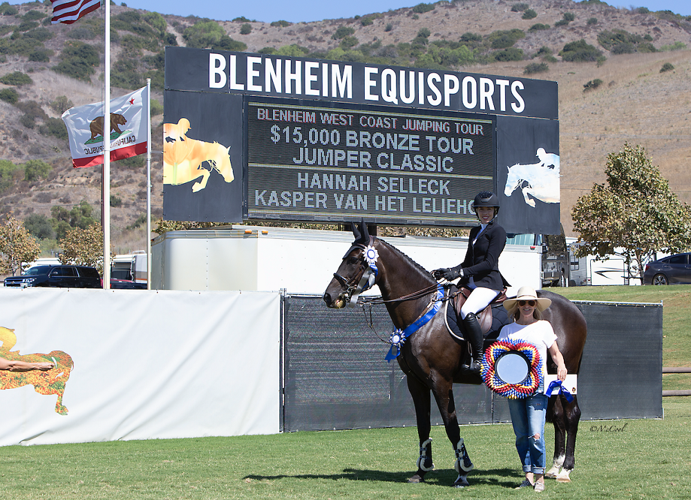 San Juan Capistrano, California, USA – August 28, 2021 – As the first entry in the ring for Saturday’s $15,000 1.35m Bronze Tour Jumper Classic at the Showpark Summer Classic, Hannah Selleck (USA) and Kasper van het Leliehof quickly took over the top of the leaderboard, and the pair never relinquished their winning position.