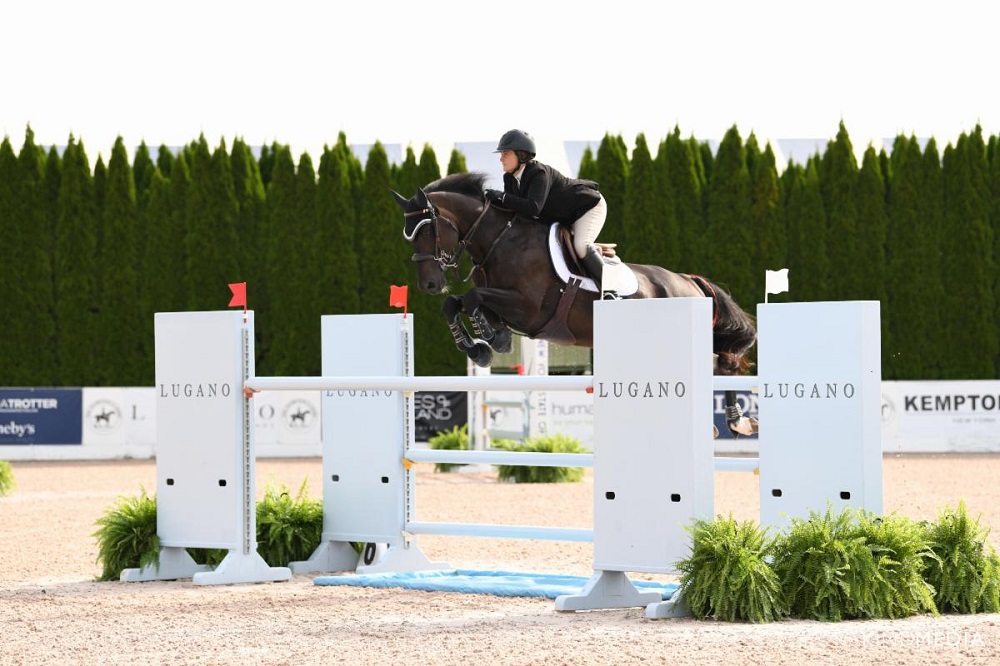 Bridgehampton, New York – August 31, 2021 – Victoria Colvin (USA) of Loxahatchee, Fla., and Gemino, owned by BMT Partners, had the fastest of nine clear rounds in the $10,000 Storeybrook Farm Open Jumper Section B, winning the class with a time of 55.591 seconds. Second place went to Evan Coluccio (USA) of Marshall, Va., aboard Hampton Green Farm LLC’s Egalini for their time of 56.749 seconds. Alex Matz (USA) of Coatesville, Penn., was third, riding Horseshoe Trail Farm LLC’s VDL Nikita Van De Leeuwerk to a time of 58.619 seconds.