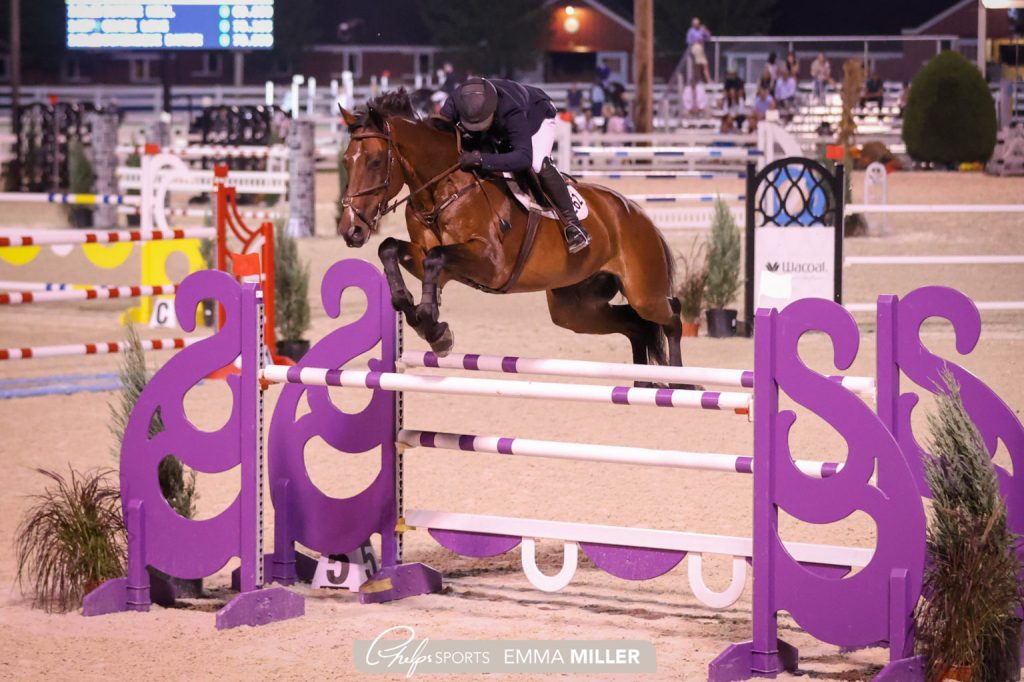 Devon, Pennsylvania – September 18, 2021 – The stadium surrounding the Dixon Oval at the Devon Fall Classic was packed with spectators from near and far in anticipation of the weekend’s highlight event, the $25,000 Devon Fall Classic Grand Prix. With the high energy of the night, Kaitlyn Williams (USA) and Cassio Melloni rode quickly and carefully to beat out the competition and wrap up the evening with a victory gallop around the arena.