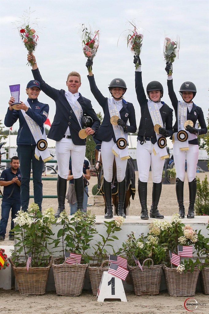Kronenberg, The Netherlands – September 26, 2021 – The U.S. Jumping Team fielded two teams at the FEI Jumping Nations Cup™ Youth Final in Kronenberg, the Netherlands, with both junior and young rider athletes experiencing international team competition in a championship atmosphere. The U.S. Junior Jumping Team took top honors, earning team gold in the FEI Jumping Nations Cup CSIOJ competition, while the U.S. Young Rider Jumping Team took sixth in the FEI Jumping Nations Cup CSIOY competition. Both teams were led by Chef d’Equipe Anne Kursinski.