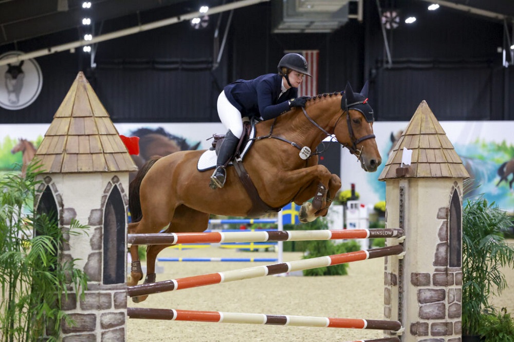 Claiming the third place spot was Charlotte Clark (USA) and her own Kinsella (Capitalist x Jerpoint Mist) an 11-year-old Chestnut Irish Sport Horse mare, of Kendalwood Farm in Sunbury, Ohio. This pair always shows up and shows out in any WEC class they enter. Tonight they managed a first clear round of 72.494 seconds earning a spot in the jump-off where they jumped clear again crossing the timers in only 38.913 seconds