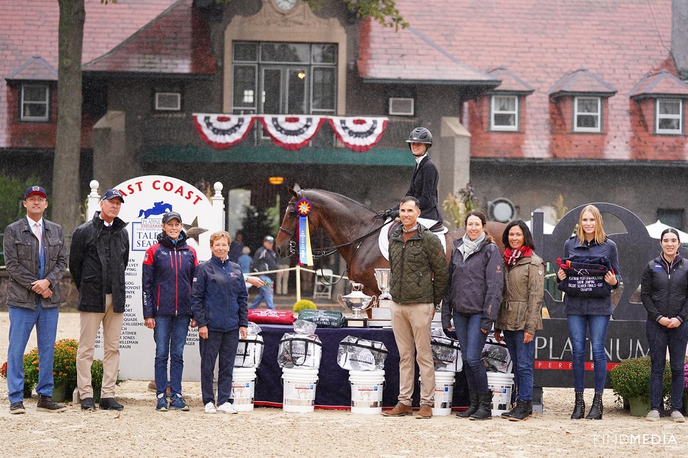 Gladstone, New Jersey, USA – October 10, 2021 – Natalie Jayne (USA) and Charisma secured a win in the prestigious Platinum Performance/USEF Show Jumping Talent Search Finals – East after three days of intense competition at the historic United States Equestrian Team headquarters in Gladstone, New Jersey. Jayne rode to a final phase four score of 365 to earn the victory ahead of Dominic Gibbs (USA), who finished in second place with a final score of 359. Audrey Schulze (USA) took third with a phase four score of 336, while Luke Jensen (USA) rounded out the top four finishers on a 335.