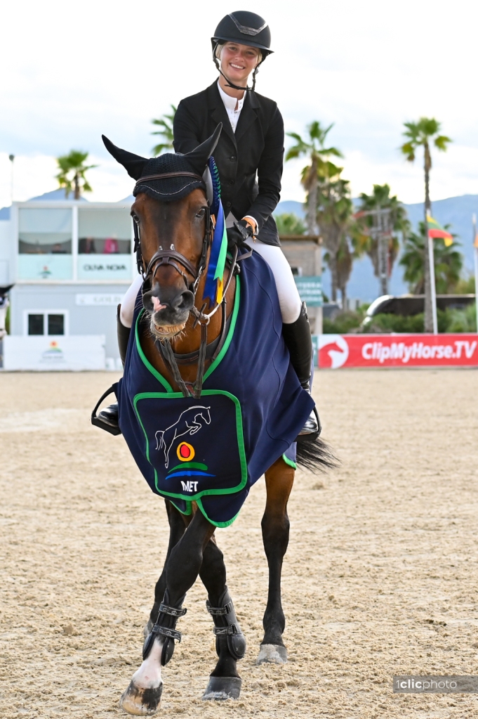 Oliva Nova, Spain – October 31, 2021 – This week, the 2021 Autumn MET resumed with its second part of the tour in Oliva Nova, Spain and it was Isabella Russekoff (USA) and Balou’s Fly High (Balou du Rouet x Grandeur) that went away with the biggest win in Sunday’s CSI2* 1.45m Grand Prix presented by Dammann Reitplatz- u. Sportplatzbau GmbH. “This is a really big win for me; I have not had a FEI Grand Prix win yet,” the happy winner commented.