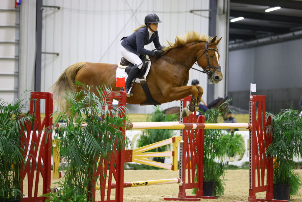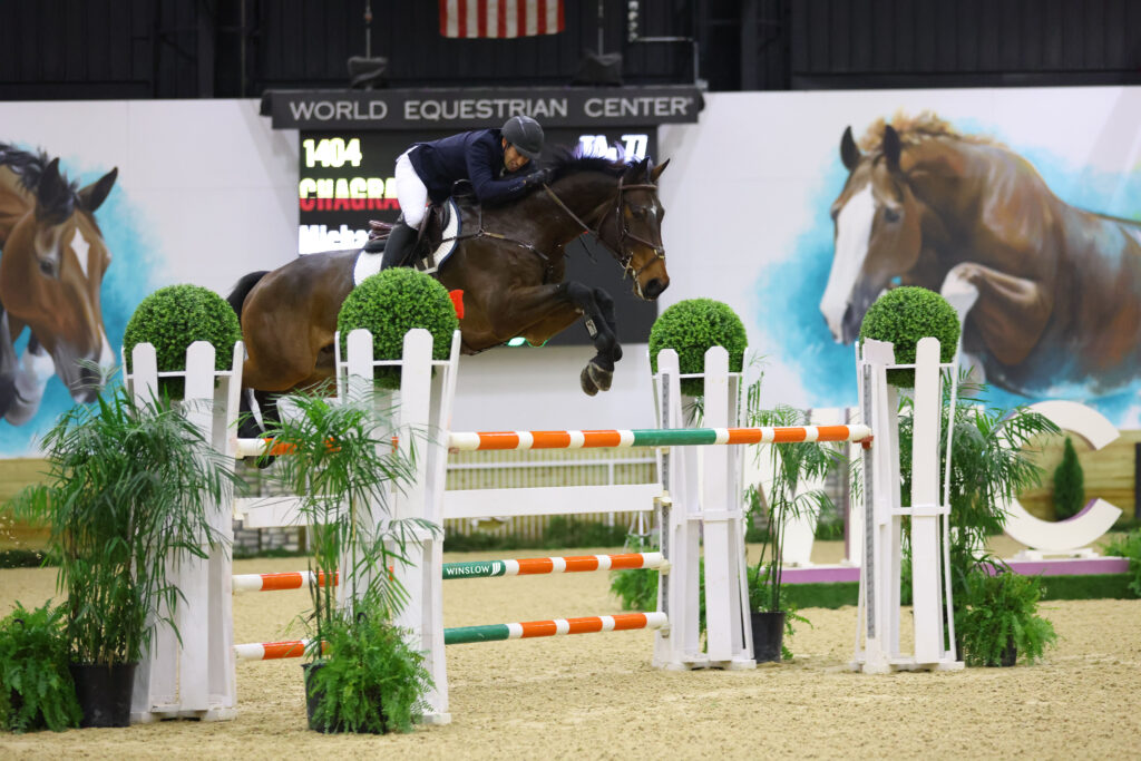 Wilmington, Ohio – November 21, 2021 – The Sanctuary arena stands were filled for the Saturday evening feature classes at World Equestrian Center – Wilmington. Up-and-coming horses and their riders gave it their all in the $10,000 Futures Prix, meanwhile top-level competitors vied for the win in the $30,000 Grand Prix. The course for tonight’s classes were designed by course designer Keith Bollotte. The $30,000 WEC Grand Prix 1.40 – 1.45 featured many bending lines, a triple combination and a liverpool which proved challenging for many competitors.