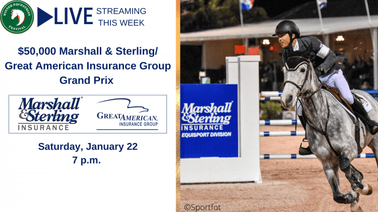 Wellington, Florida, USA – Super Saturday rolls tonight during 2022 Winter Equestrian Festival (WEF) at the Palm Beach International Equestrian Center (PBIEC) and the Saturday’s feature class is just minutes away from starting. Please click on the link below or image above to have direct acess to the live streaming feed of the $50,000 Marshall & Sterling/ Great American Insurance Group Grand Prix. Enjoy!