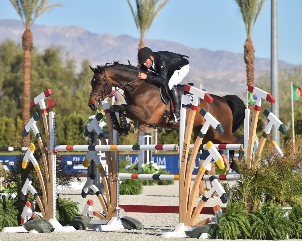 Thermal, California – January 23, 2022 – The Grand Prix Arena played host to the final jumper class of Desert Circuit I, the $10,000 Interactive Mortgage 10 & Under Futurity Series 1.35m. Open to all horses aged 10 and under, the coveted class offers incredible prize money in an effort to identify the top young talent in the jumper ring. The series debuted in November of 2021 and will feature a class every week of Desert Circuit. With 24 entries, including top athletes piloting their up-and-coming mounts, the class was competitive, but in the end it was Kyle King (USA) who scored the win with Ittolo and second place with Gipsy De L’epinette.