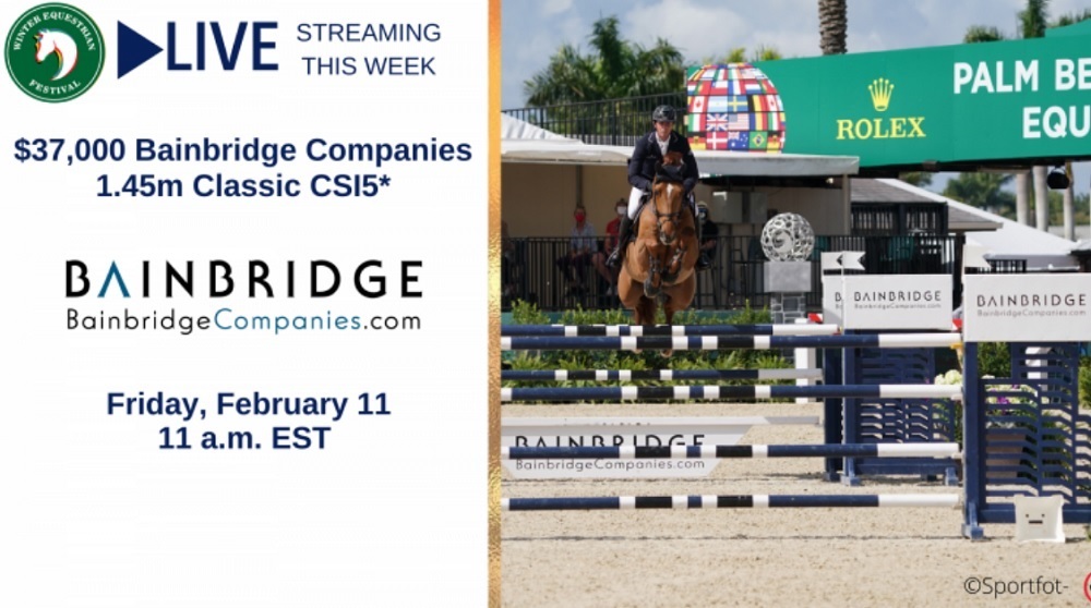 Wellington, Florida, USA – February 11, 2022 – It’s showtime for showjumping during the fifth week of the 2022 Winter Equestrian Festival (WEF) at the Palm Beach International Equestrian Center (PBIEC) and Thursday’s major class is the $37,000 Bainbridge Companies CSI 5*, today starting at 11:00 AM local time. Please click on the link below or image above to have direct acess to the live streaming feed of this challenge at Wellington. Enjoy!