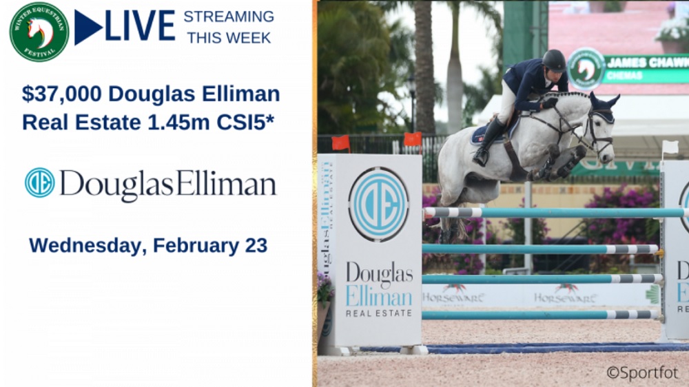 Wellington, Florida, USA – February 23, 2022 – It’s showtime for showjumping during the seventh week of the 2022 Winter Equestrian Festival (WEF) at the Palm Beach International Equestrian Center (PBIEC) and the $37,000 Douglas Elliman CSI 5*, today starting at 2:00 PM local time. Please click on the link below or image above to have direct acess to the live streaming feed of this challenge at Wellington. Enjoy!