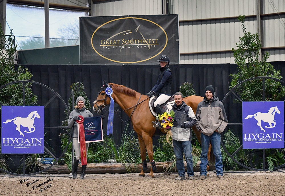 Katy, Texas, USA – February 24, 2022 – Jacqueline Ruyle (USA) claimed the top two spots in the $25,000 ReRide Tack Grand Prix with San Chano and Cyramo Z, respectively, on Thursday, February 24, at the Texas Winter Series Week IV in Katy, TX.
