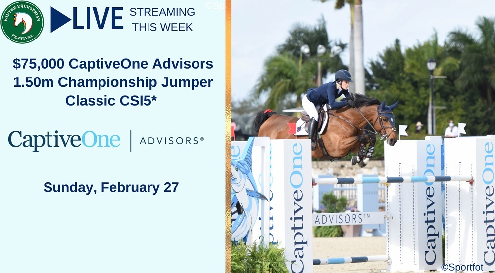 Wellington, Florida, USA – February 24, 2022 – It’s showtime for showjumping during the seventh week of the 2022 Winter Equestrian Festival (WEF) at the Palm Beach International Equestrian Center (PBIEC) and the $75,000 CaptiveOne Advisors Classic CSI 5*, today starting at 10:45 AM local time. Please click on the link below or image above to have direct acess to the live streaming feed of this challenge at Wellington. Enjoy!