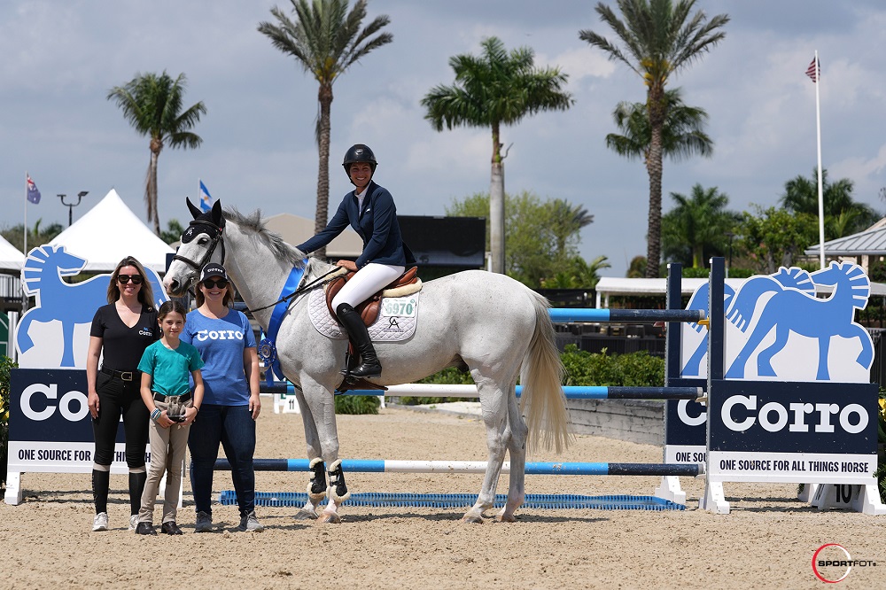 Wellington, Florida, USA – March 10, 2022 – The International Arena was buzzing this morning with 73 entries for the $37,000 Corro 1.45m Grand Prix Qualifier CSI 2*. Carly Anthony (USA) and Jet Blue led the way from start to finish to don the winning blue ribbon sash.