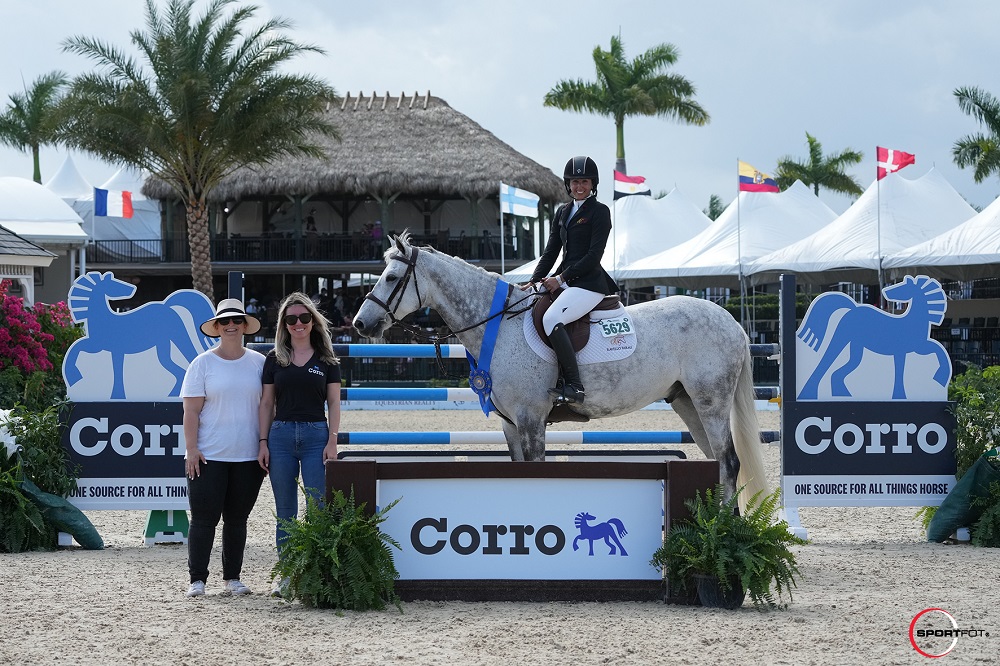 Wellington, Florida, USA – March 11, 2022 – The $6,000 Corro 1.45m CSI 2* wrapped up international competition for the day. Just under 30 entries put forth their efforts over Wade’s single-round speed track. The class concluded with a win for the USA as Maria Costa (USA) piloted Iceman B SFN to the winning time of 63.40 seconds.