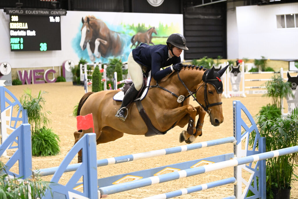 Standing in second place were crowd favorites, Charlotte Clark (USA) and Kinsella. The red-beauty, Kinsella, a 12-year-old chestnut Irish Sport Horse mare, is a longtime ride of Clark’s. The veteran team has procured a long list of accomplishments at WEC and continues to top each class they enter. Today they finished with a time of 73.491 seconds in the qualifier, and a 43.664 second, red ribbon finish in the jump-off.