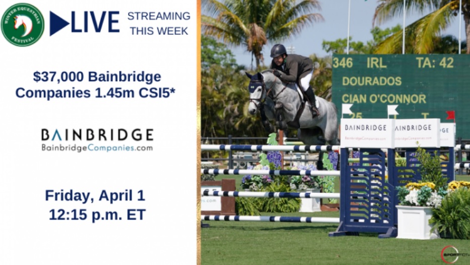 Wellington, Florida, USA – April 01, 2022 – It’s showtime for showjumping this Friday during the twelfth week of the 2022 Winter Equestrian Festival (WEF) at the Wellington International and the feature class of the day, the $37,000 Bainbridge Companies CSI 5*, starting at 12:15 PM (EST) local time. Please click on the links below or the image above to have direct acess to the live streaming feed and order-of-go in this challenge at Wellington. Enjoy!