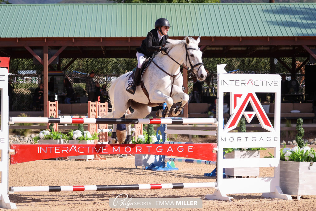 Temecula, California – April 22, 2022 – The Temecula Valley National Premier I kicked the speed up a notch Friday in the Grand Prix Arena as athletes took to the $10,000 1.35m NEEd For Speed Derby, sponsored by Alliant Private Client. Set in the USEF Table III format, each fault incurred on course was converted to four additional seconds on the clock, encouraging athletes to put forth their best efforts and potentially sacrifice a rail if it meant a speedier round. Twenty-two competitors took on the class, which served as a National Equestrian Tournament qualifier at the 1.35m level. Reigning victorious was junior rider Jake Endicott (USA) and Carisma, who, despite one rail down, secured the fastest time by nearly two seconds.