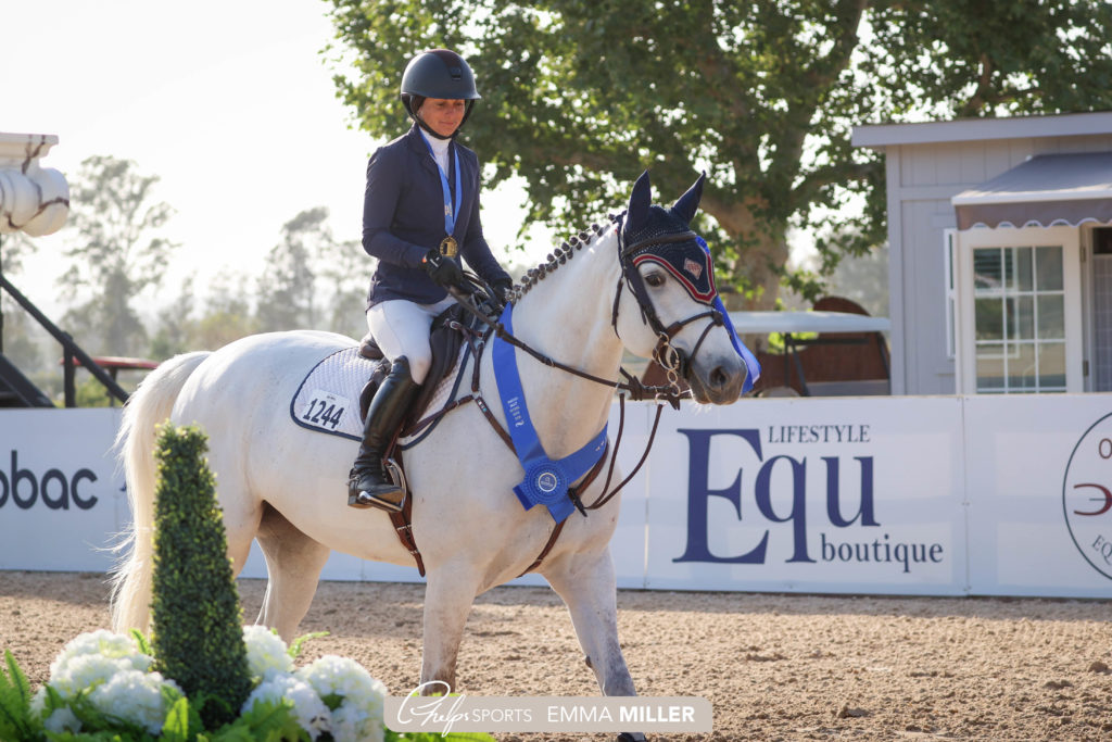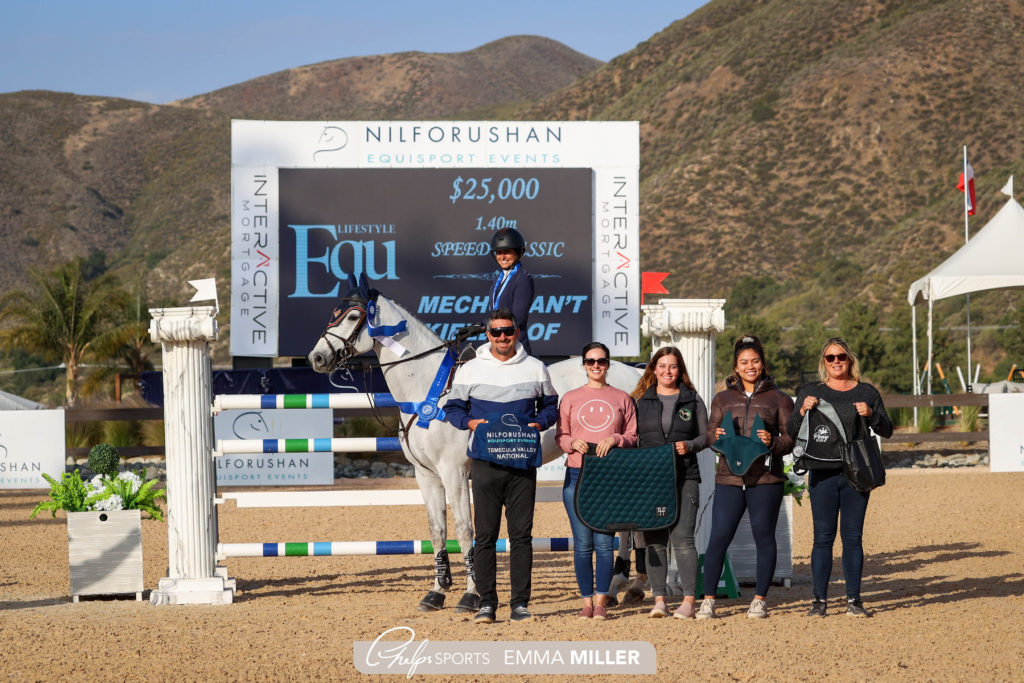 Temecula, California – April 28, 2022 – Temecula Valley National Premier II continued Thursday with the exciting feature class of the day, the $25,000 Equ Lifestyle Boutique 1.40m Speed Classic. With 71 entries coming forth to contest the track built by Germany’s Olaf Petersen, Jr., the stakes were high with significant prize money and bragging rights on the line. Athletes took to the single-round class and attempted to navigate the course fault-free and as quickly as possible to take home the top prize. The winners, following 71 rounds, were Kaitlin Campbell (USA) and Mecho Van’t Kiezelhof, topping 17 clear rounds.