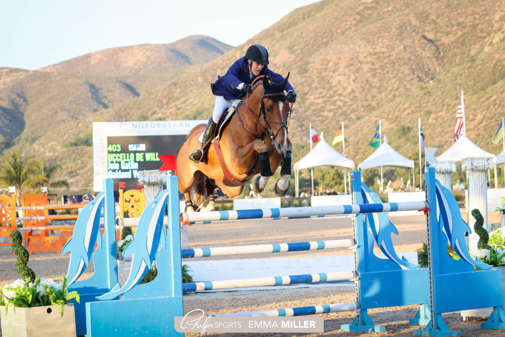 Joie Gatlin (USA) came in and studied the course, then directed the 13-year-old Warmblood gelding, owned by Oakland Ventures LLC, to the first fence with a forward momentum but not yet a full gallop. She opted to take the inside turns, knowing the consequences were steep if she was to drop a fence on course. As she efficiently navigated the course, Uccello De Will stayed careful and did not touch a rail, standing up to the pressure and ultimately clearing the course in 40.887 seconds and taking the win. Cassar and her 12-year-old Oldenburg gelding Mylord Cornet dropped into second place, while Potter rounded out the top three.