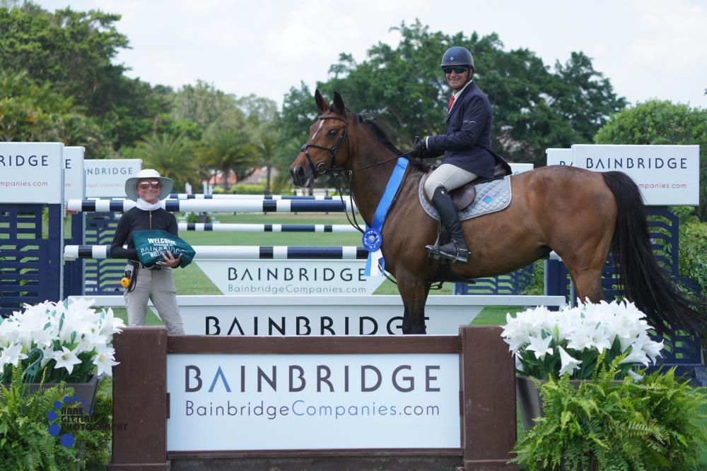 Wellington, Florida, USA – May 05, 2022 – Friday’s $10,000 Bainbridge Companies 1.40m Open Stake showcased 34 competitors who tested the opening track designed by Héctor Loyola (PUR), with Vale again bookending the podium. As one of the last competitors to test the jump-off track, Vale (USA) sped through the course in 43.10 seconds with I.Adermie R 4 to edge out the current frontrunners, Farrington and Greya, and ultimately win the class.