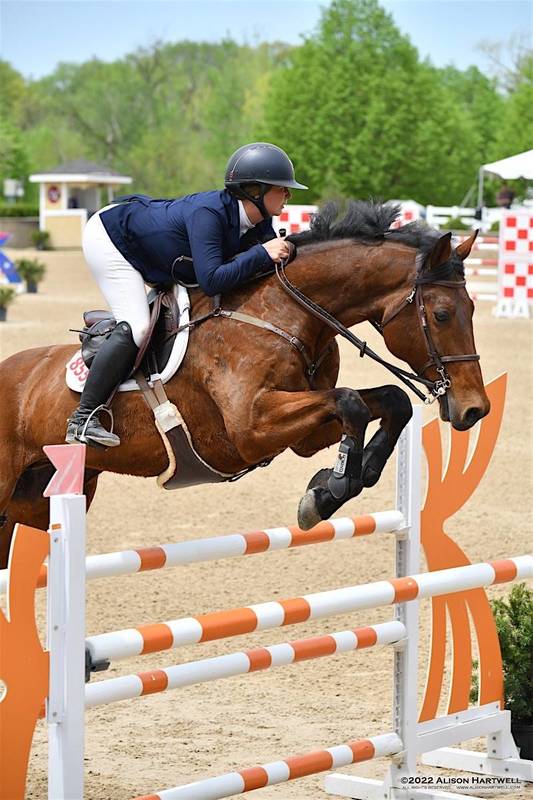 Wayne, Illinois, USA – May 14, 2022 – Everything was coming up golden for Lisa Goldman-Smolen (USA) on Saturday during the Lamplight Spring Classic I at HITS Chicago. With multiple entries in the hotly contested $25,000 Hits Grand Prix, the talented professional secured the top two placings by producing two double-clear efforts during the day’s highlight event. The victory gallop was led by Ivaro N, while Nike garnered the second-place award with the Hawthorn Woods native.