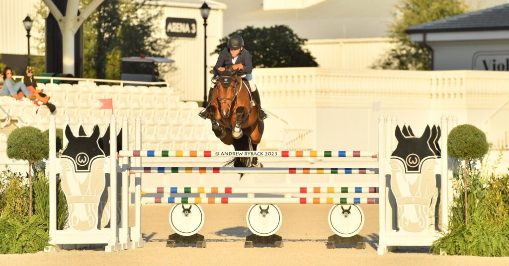 Ocala, Florida, USA – January 13, 2023 – It was another action-packed day during the 2023 Winter Spectacular Show Series at World Equestrian Center (WEC) – Ocala as an impressive field of 24 competitors from six different nations vied for the ultimate prize in the $24,000 C. Jarvis Insurance Welcome Prix. After a thrilling ten horse jump-off, it was Olympic Gold Medalist Will Simpson (USA) and his partner Whoop De Doo (Mr. Whoopy x Double Trouble X) owned by 5 Roosters that snagged the victory.
