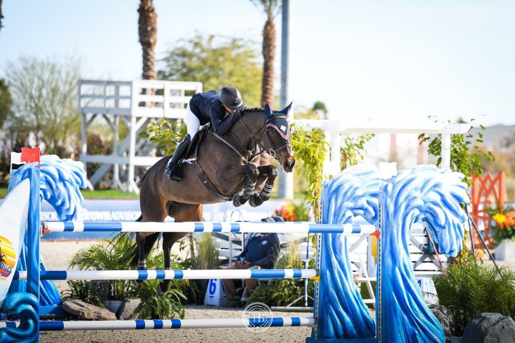 Thermal, California, USA – February 03, 2023 – When Kaitlin Campbell (USA) saunters into the ring on Palina de L’Escaut, she isn’t the obvious choice for winner to the untrained eye. But once it’s game time, it’s game over for other competitors if the mare keeps the rails up.