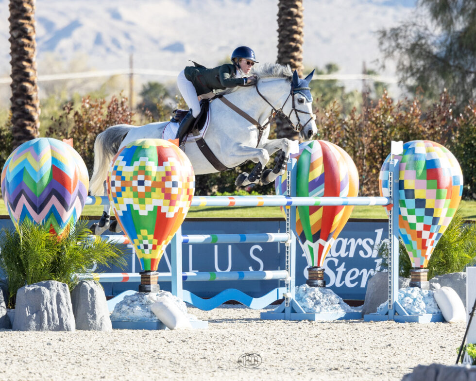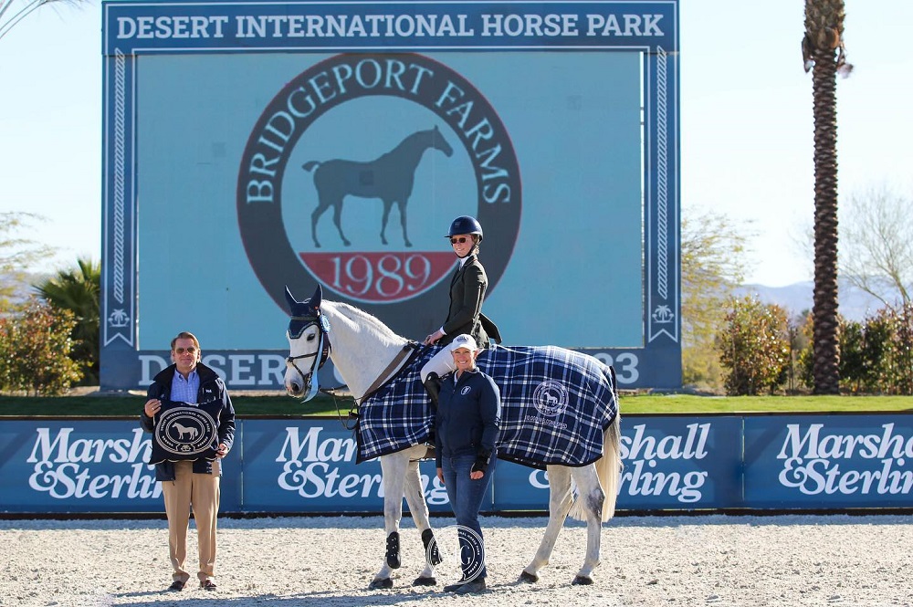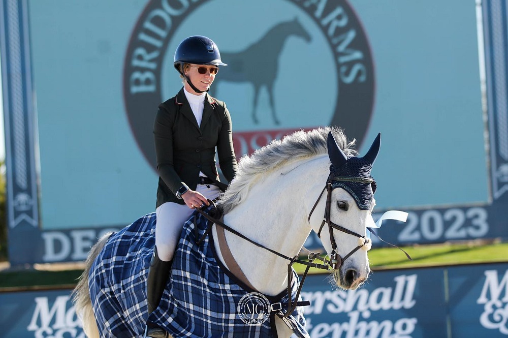 Thermal, California, USA – February 01, 2023 – Skylar Wireman (USA) returned to Desert International Horse Park (DIHP) and resumed her winning ways Wednesday morning. Aboard Karen!, the 18-year-old rider from Bonsall, CA, took the win in the $10,000 Bridgeport Farms Welcome Speed 1.35m to kick off action at Desert Circuit IV.