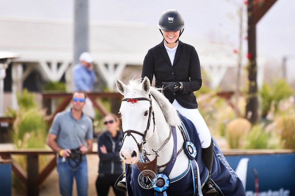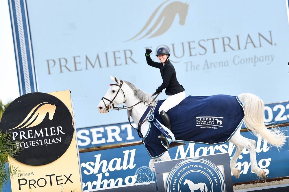 Thermal, California, USA – February 15, 2023 – Elisa Broz (USA) is wasting no time achieving her monumental goals. At just 18 years old, she captured her first FEI grand prix victory in Sunday’s $145,100 Premier Equestrian Grand Prix CSI 3* at Desert International Horse Park (DIHP).