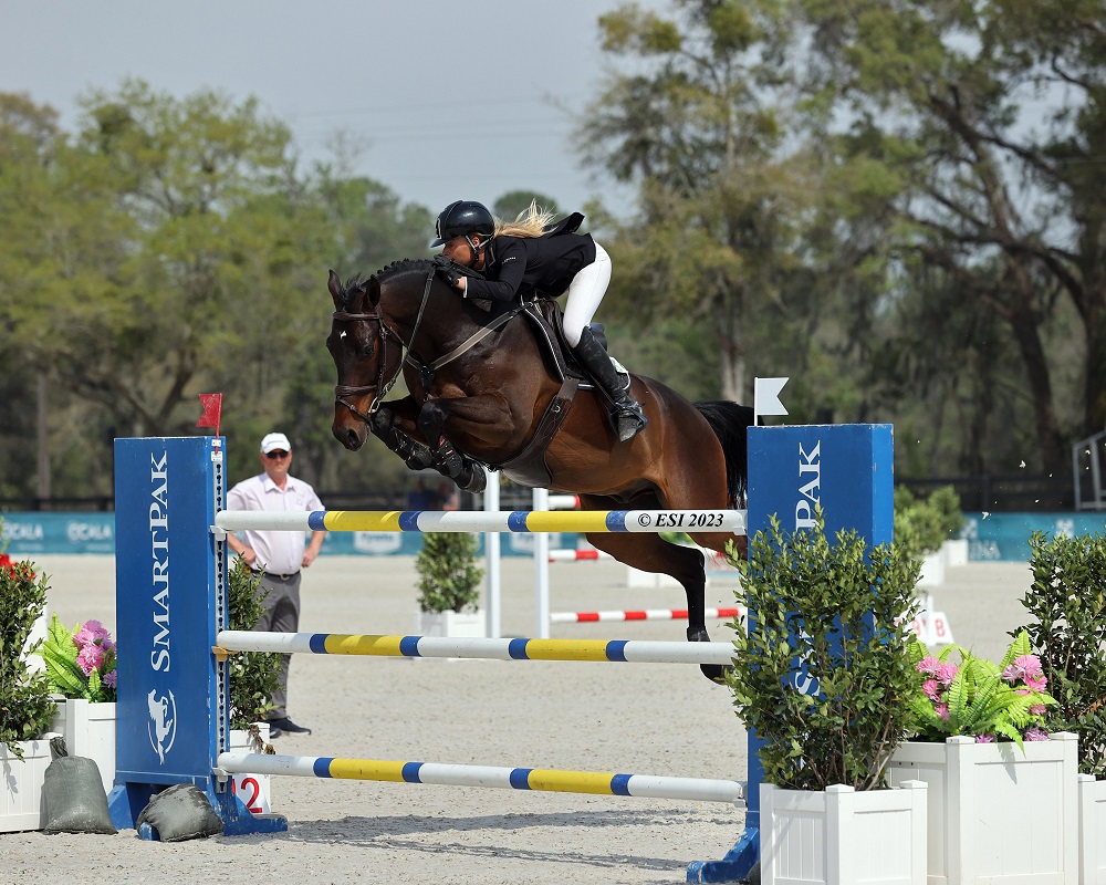 Ocala, Florida, USA – March 03, 2023 – Kristen Vanderveen (USA) and Bull Run’s Jireh bested a nine-horse jump-off on Friday afternoon to win the $25,000 SmartPak Grand Prix at Hits Ocala. She and the 9-year-old Holsteiner gelding posted an unbeatable double-clear effort during the tiebreaker to eventually take home the lion’s share of the prize money. Tom Foley (IRL) and Idalgo were just behind them and claimed second place, while Hunter Holloway and Kalina N took the third-place honors.