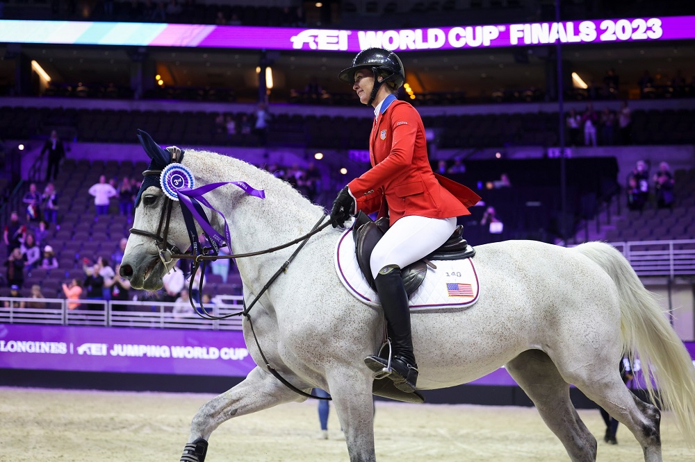 Omaha, Nebraska – April 08, 2023 – The third and final competition of the of the Longines FEI Jumping World Cup™ Final closed out the 2023 FEI World Cup™ Finals Omaha last Saturday night. Thirty combinations returned to the CHI Health Center Omaha for the first of two rounds, while the top 20 came back for the second round. The courses designed by Bernardo Costa Cabral (POR) were championship tracks with both technical questions and big fences. Kansas-native Hunter Holloway (USA) and Pepita Con Spita were dubbed the hometown favorites and rose to the occasion in the high-pressure championship format to clinch a podium finish. Henrik von Eckermann (SWE) and King Edward claimed the FEI Jumping World Cup™ Final champion title, while Harrie Smolders (NED) and Monaco N.O.P. placed second.