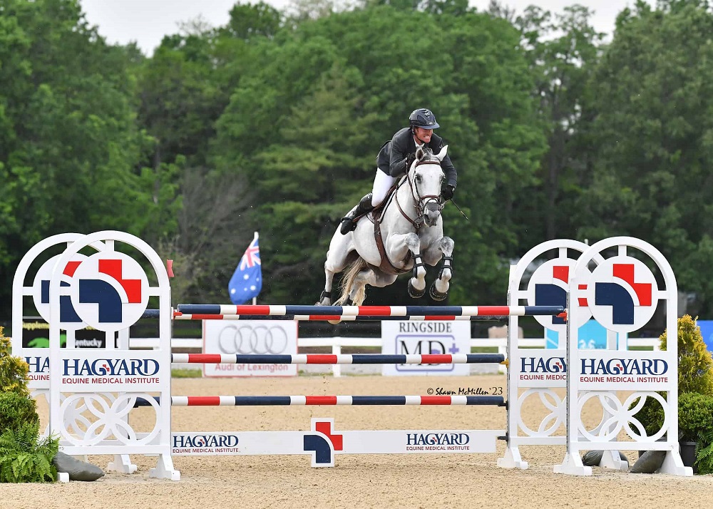 Lexington, Kentucky, USA May – 13, 2023 – Saturday night marked the first grand prix of the season at the Kentucky Spring Horse Show. As the sun went down and jumper competition came to a head, a beautiful evening set the scene for the $145,100 Hagyard Lexington Grand Prix CSI3* in the illustrious Rolex Stadium, where 35 horse-and-rider athlete combinations faced off to claim the blue ribbon and lion’s share of the prize money. At the conclusion of the highly competitive class that saw 10 partnerships in the jump off, it was Quentin Judge (USA) aboard HH Zorro Z who grabbed the top spot on the leaderboard with a stellar double clear effort, crossing the wire just 0.52 seconds faster than the next duo in the jump off.