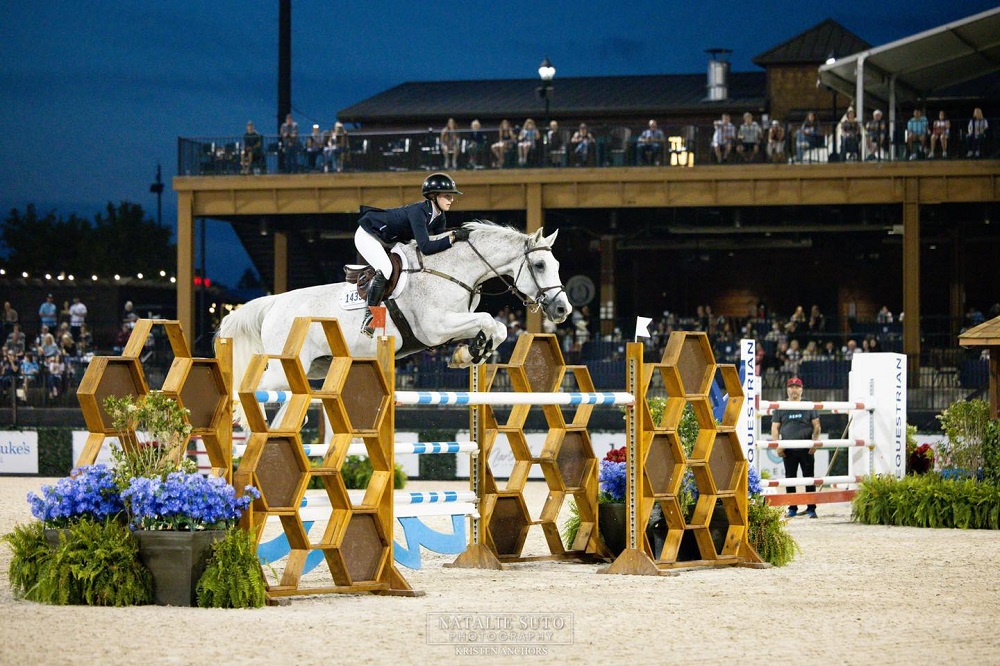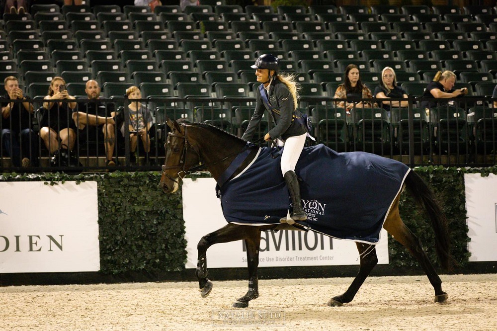 While VanderVeen had some bad luck with her longtime mount, Bull Run’s Faustino de Tili, and retired him from the first round, an up-and-down class didn’t keep the evening from concluding her successful week on a high note. “It’s great [to be back under the lights]. There’s been a great atmosphere this week, especially for the Welcome Stake, which this horse won as well.”