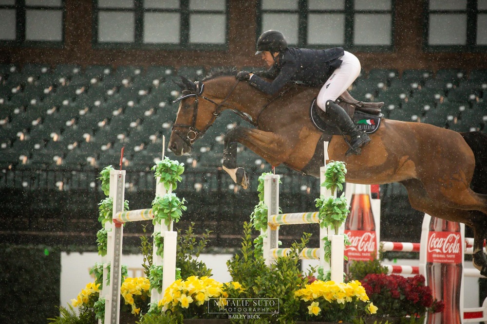McKayla Langmeier (USA) and Bahira S, the 2010 Oldenburg mare (Balou du Rouet x Unknown) owned by Rafferty Farm LLC, produced a double-clear round in 42.106 seconds to earn third place.