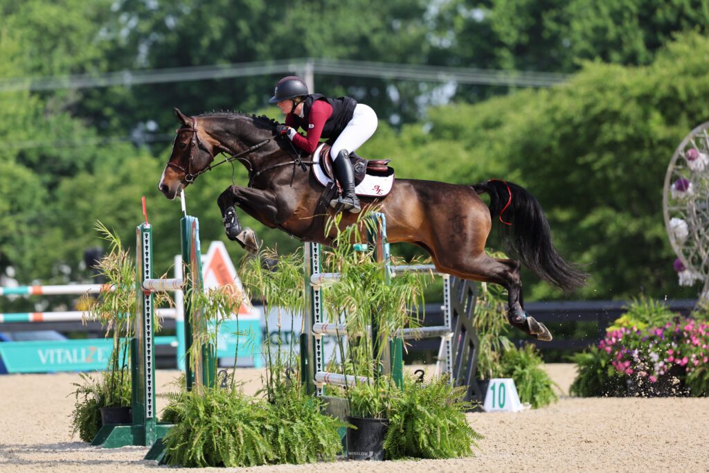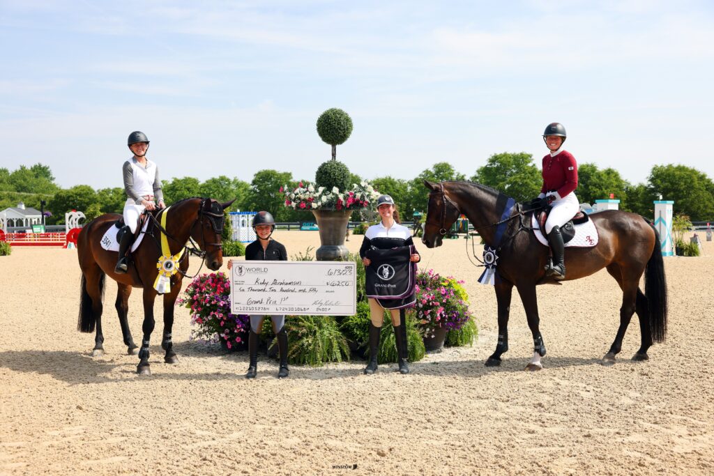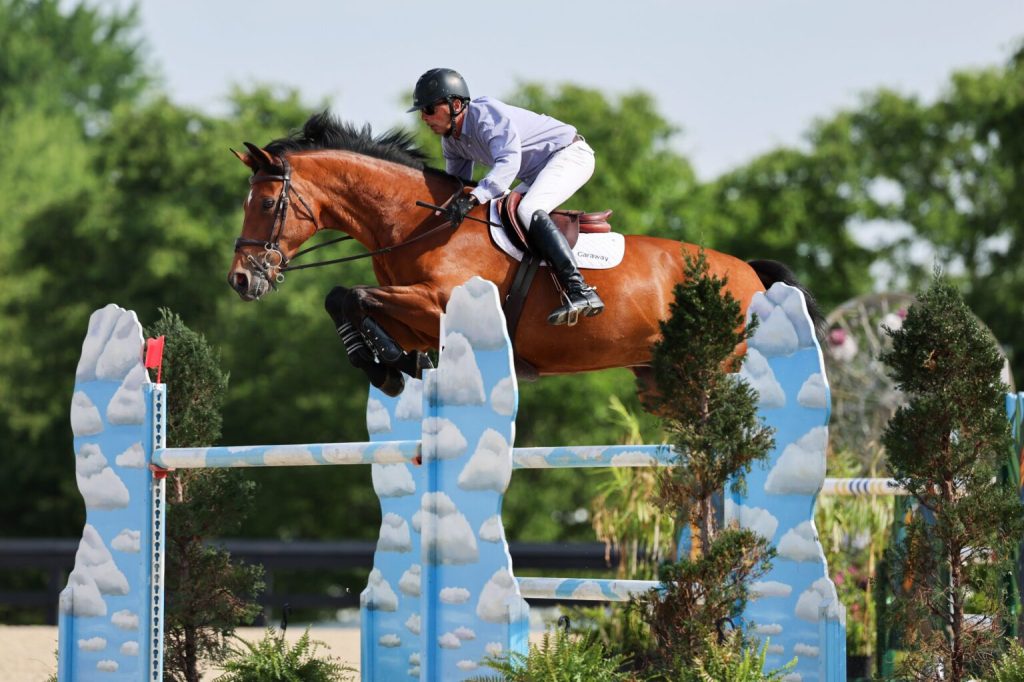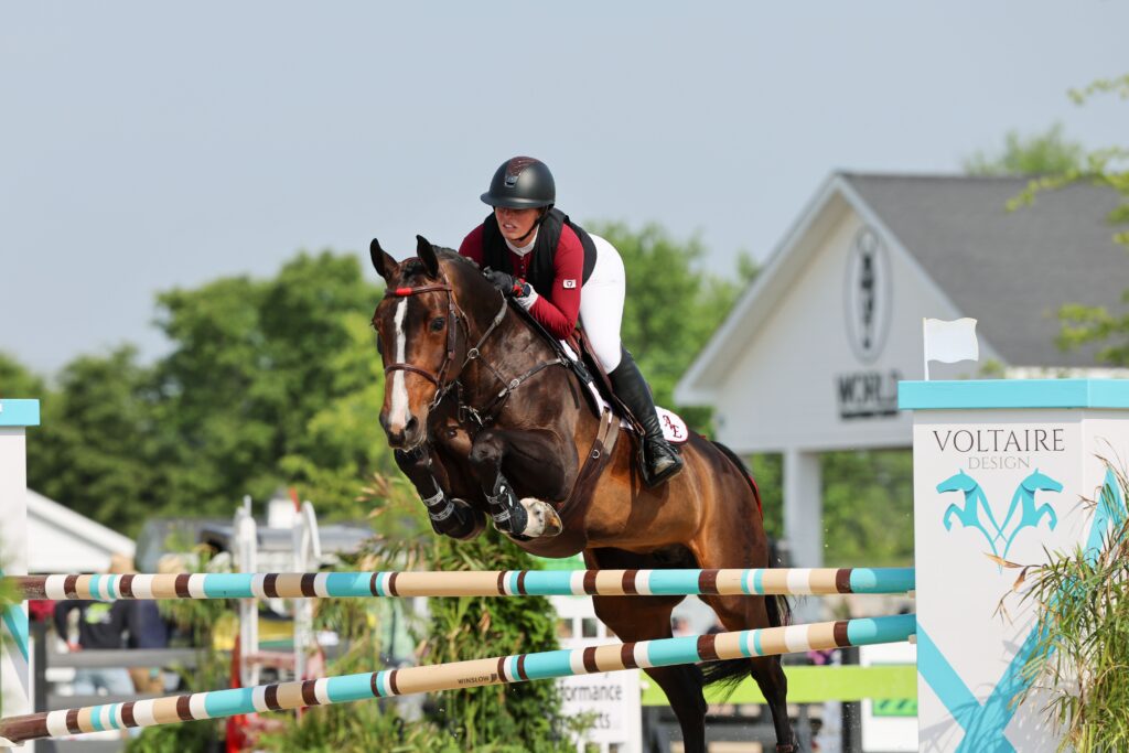 Wilmington, Ohio, USA – June 03, 2023 – Sixteen horse-and-athlete combinations met at sunrise Saturday morning for the $25,000 Grand Prix of Spring II at World Equestrian Center – Wilmington. Bobby Murphy (USA) set the technical tracks for the field of athletes that allowed just four pairs to advance to the jump-off. No stranger to the winner’s circle, Kady Abrahamson (USA), dominated the class with her talented mares, earning her second feature class win of the week aboard her own Any (Aljano x Nina XI).