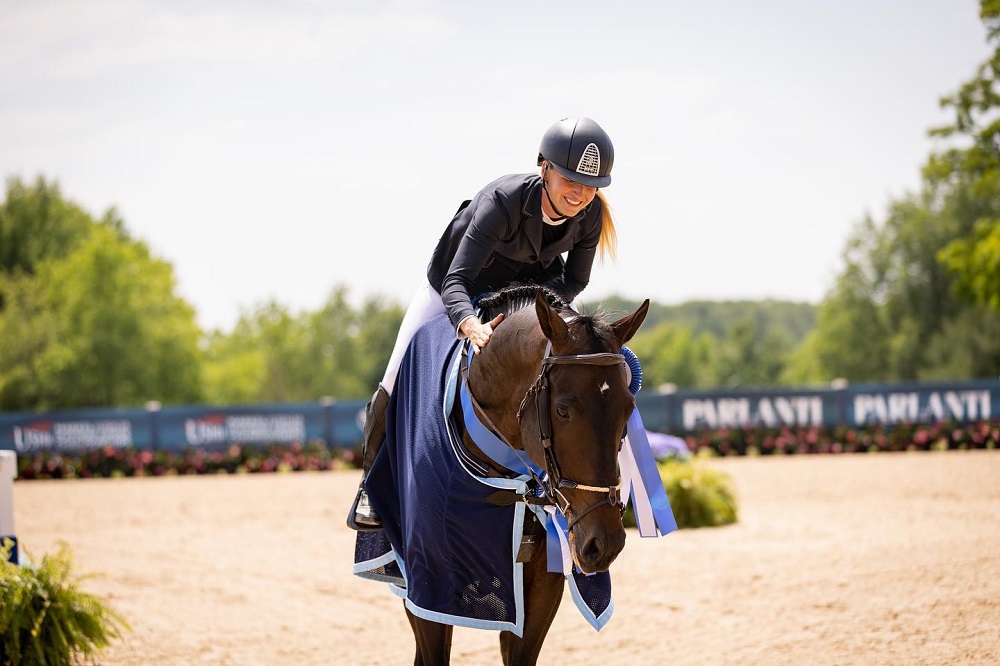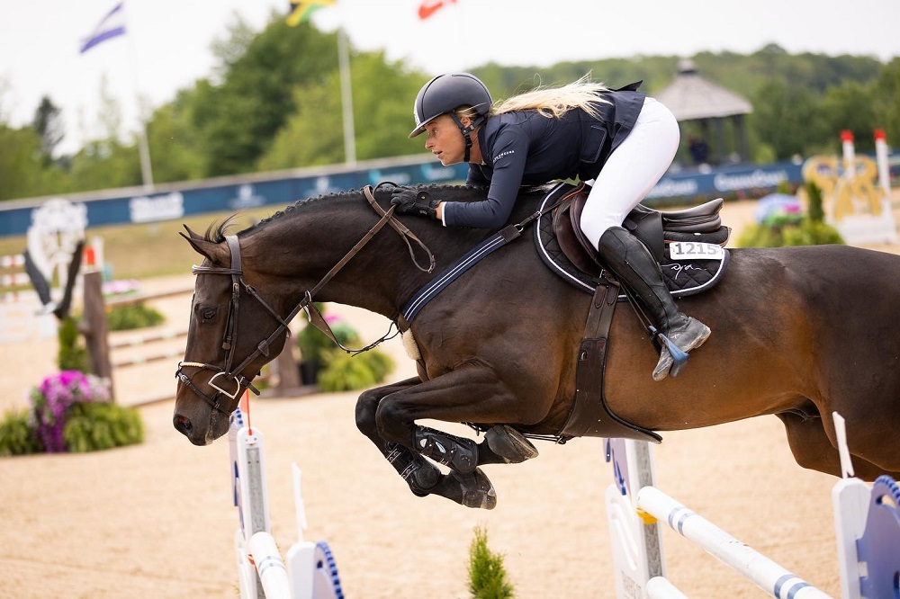 Traverse City, Michigan, USA – June 23, 2023 – Kristen VanderVeen (USA) is perhaps best known for her unforgettable victories and high levels of speed with her 18-year-old Bull Run’s Faustino De Tili, but in Friday’s $38,700 Welcome Stake CSI 3*, she ended up taking victory on a horse that is nine years “Frosty’s” junior.