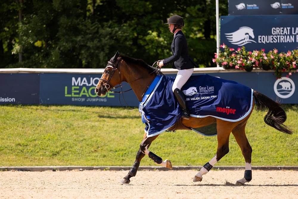 Traverse City, Michigan, USA – July 09, 2023 – As the last few pairs returned to jump off in the $145,100 Meijer Grand Prix CSI 3*, it didn’t appear that the times could get any faster. Cathleen Driscoll (USA), however, had other plans.