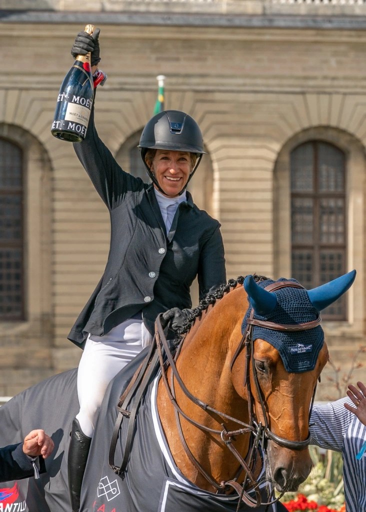 Chantilly, France – July 15, 2023 – What could be better for a new organization, the Grandprix group, when the winner of its first 4* Grand Prix is one of the greatest riders on the circuit, the American Laura Kraut (FRA), with a prestigious track record: gold medal at the Beijing Olympic Games (2008), silver at the Tokyo Games (2020); gold medal at the World Equestrian Games in Tryon-USA (2018) and silver at the World Equestrian Games in Aachen in 2006 and over one hundred and thirty international victories to her credit. One more: the €100,000 Grand Prix de La Ville de Chantilly CSI 4* with Bisquetta.