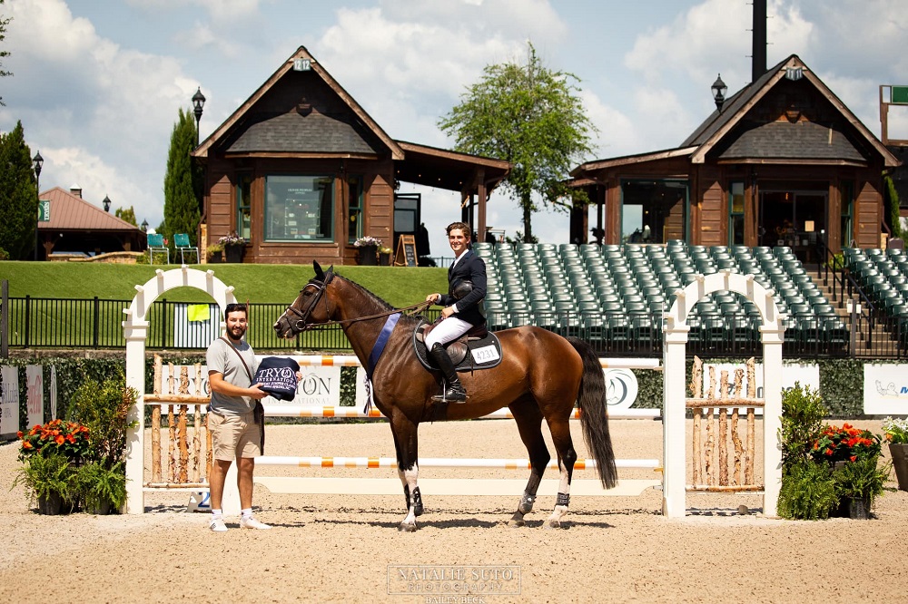 Mill Spring, North Carolina, USA – July 16, 2023 – The fifth week of the Tryon Summer Series came to an end last Sunday at the Tryon International Equestrian Center (TIEC) & Resort with the running of the $25,000 Sunday Classic, presented by The Van Winkle Law Firm. The class featured 29 entries with only five pairs making it to the jump off round. In the end, Dominic Gibbs (USA) aboard the 2012 Swedish Warmblood mare, Amazing (Baltimore x Evelien Van De) owned by Mountain King Ranch LLC’s, had a time of 35.374 seconds in the jump off to clinch the win.