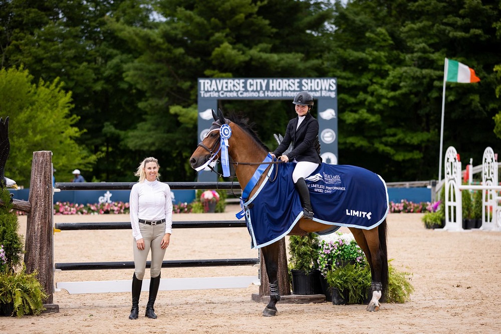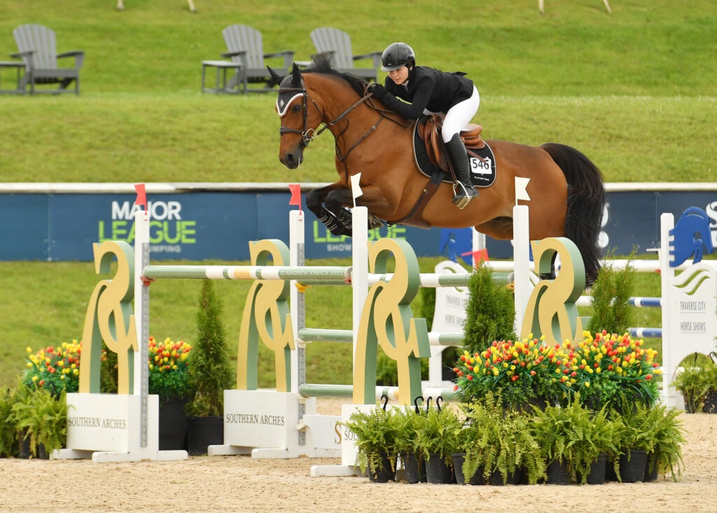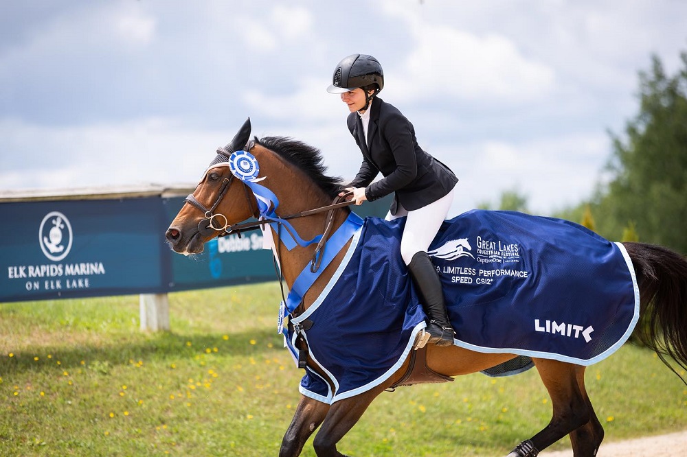 Traverse City, Michigan, USA – July 21, 2023 – The third week of the Great Lakes Equestrian Festival (GLEF) is going to be a very memorable one for Laurel Walker (USA). She made her FEI debut Thursday in the $38,700 Limitless Performance CSI2* Speed Classic aboard Armani, and she came out with a win.
