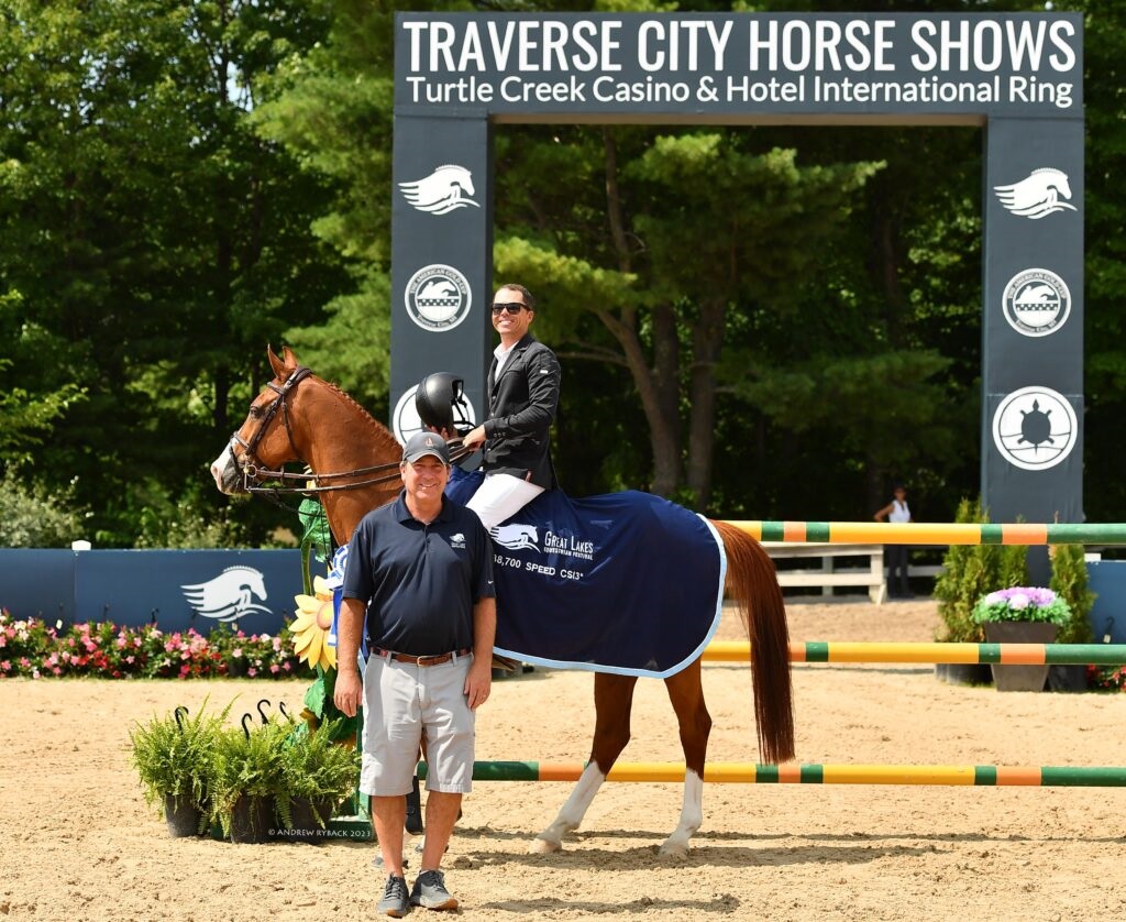 Traverse City, Michigan, USA – July 27, 2023 – Kent Farrington (USA) and Creedance took two second-place finishes during the third week of the Great Lakes Equestrian Festival, and to kick off GLEF IV, they made sure they came home with the win. Out of 28 international entries, the seasoned duo took top honors in the $38,700 CSI3* Speed Stake, adding yet another win to the horse’s impressive resume.