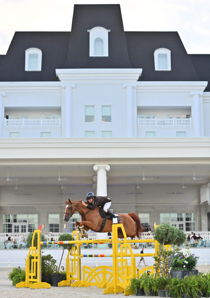 “It wasn’t a perfect jump-off course-wise for Cristo. The rollback to two is probably his weakness for going fast. The leader at that point did eight strides from one-to-two. I took an extra step and did nine, but I did do eight up to the end fence. The stride I gave up, I made up to the next one. Then I cruised pretty quick back to the in-and-out. I took a little breath on the way to the yellow. I caught the Liverpool quite good. I dropped the reins and took a chance to the last, I wasn’t quite sure I was going to get there good enough for him to takeoff, but he did. Usually when he’s running, he’s not going to hit one.”