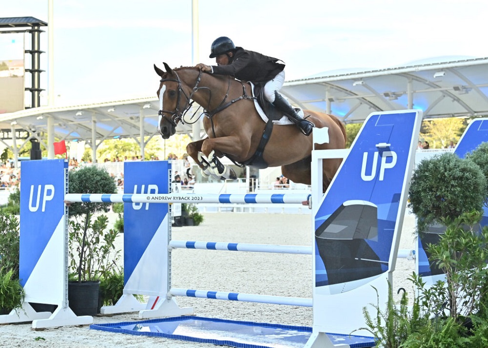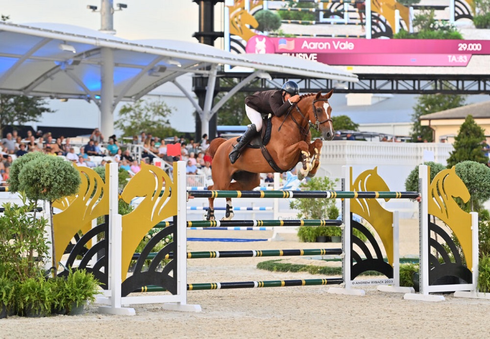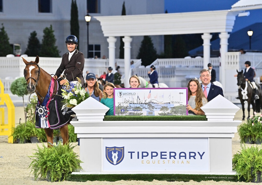 Ocala, Florida, USA – July 16, 2023 – It was a packed house at World Equestrian Center – Ocala this evening as spectators and exhibitors alike flocked to the WEC Grand Arena to watch the $100,000 Tipperary Equestrian Grand Prix. The atmosphere was electric for the field of top-level athletes, but it was Aaron Vale (USA) that scored a first and second place finish, fueled by the cheering crowd.