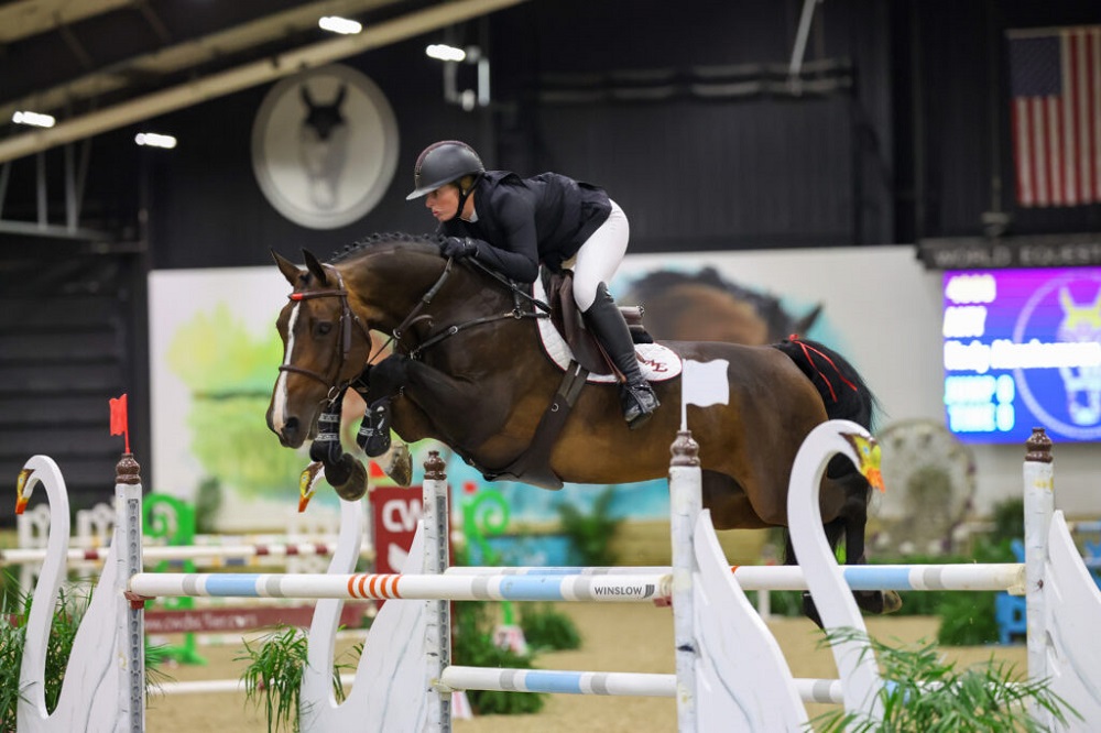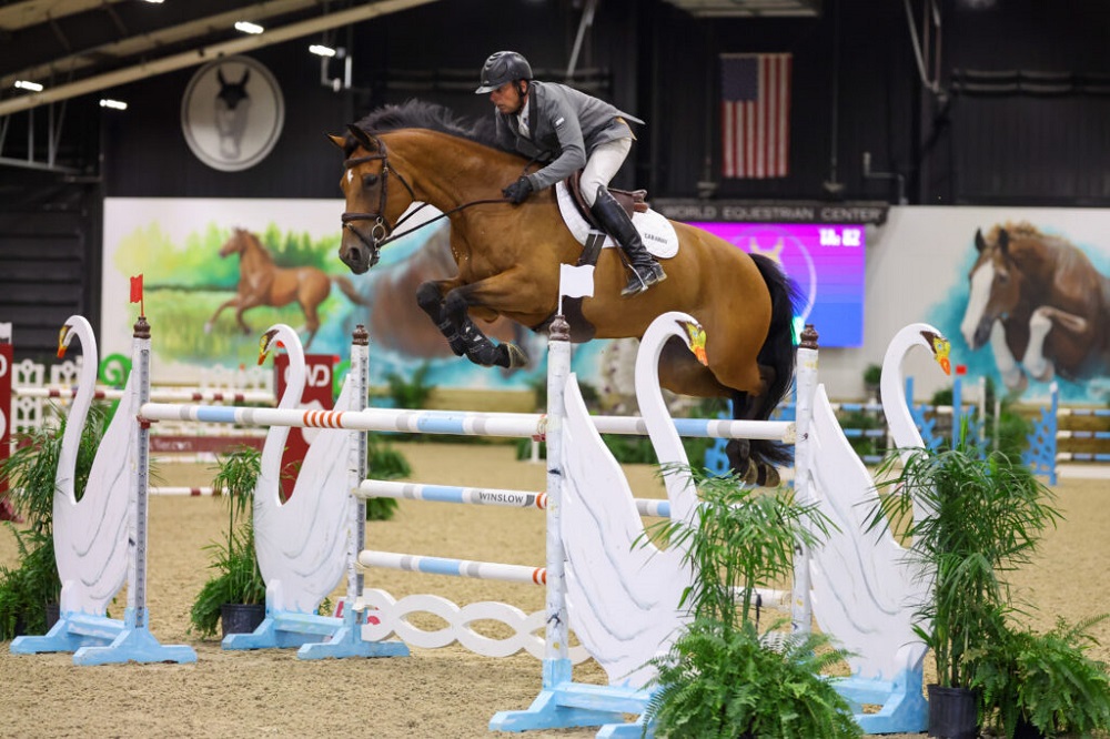 Wilmington, Ohio, USA – July 16, 2023 – World Equestrian Center – Wilmington played host to a field of 22 elite jumper athletes for the $25,000 Grand Prix of Summer I. A stormy day moved competition indoors to the Standlee Sanctuary arena, though the gloomy weather did not deter Richard Rinehart (USA) as he dominated Saturday’s show jumping competition. The stands were packed, and the crowd roared for Ron Caraway’s Vincent (Van Gogh x Nirande) as he soared over Bobby Murphy’s (USA) tracks to take the win.