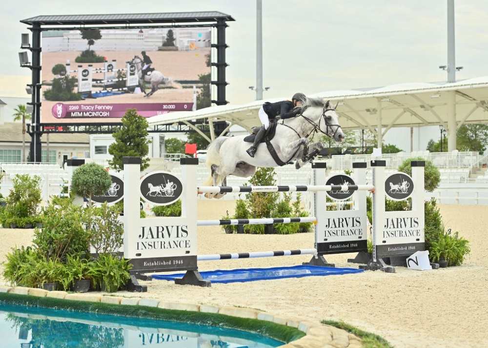 Ocala, Florida, USA – July 27, 2023 – National show jumping competition resumed early this morning during Week VIII of the 2023 Ocala Summer Series with the $24,000 C. Jarvis Insurance Welcome Prix. A thrilling ten horse jump-off made for an electric competition with placings separated by just tenths of a second. Last to go in the order, Tracy Fenney (USA) and Nina Koloseike’s MTM McIntosh (Crowntano Z x Butterfly PS Z) kicked into a new gear to capture the lion’s share of the prize money.
